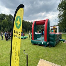 Wij beschikken over een eigen tent, zo kunnen wij altijd terplaatse een EHBO ruimte realiseren.